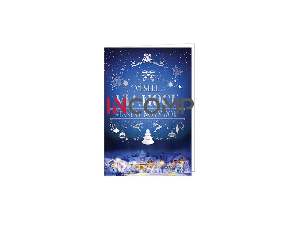 Novoročný pozdrav ofset, 3D lak strieborný. Dodávané spolu s obálkou.