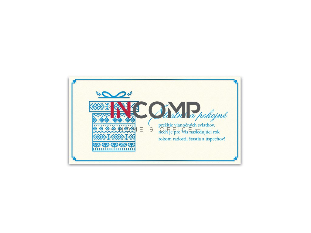 Jednolistová novoročenka na grafickom papieri s textom,modrá razba. Dodávané spolu s obálkou.