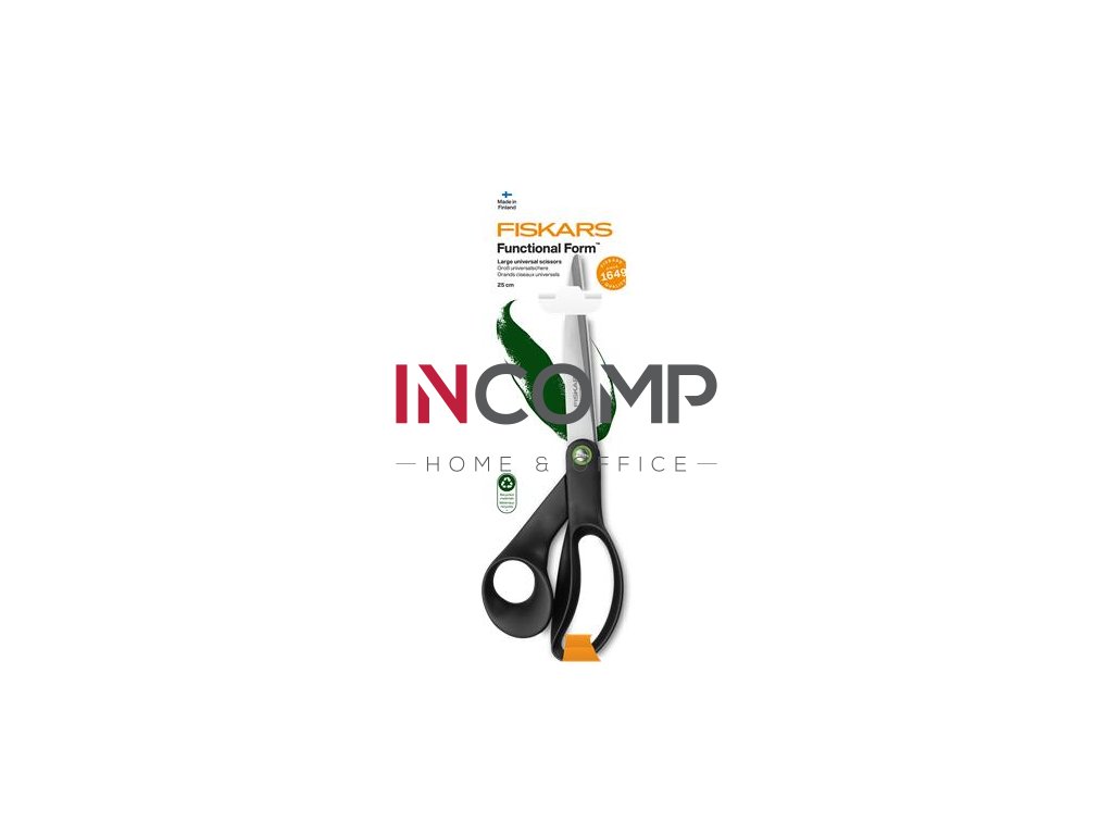 - Univerzálne nožnice veľké Fiskars Functional Form ReNew sú vyrobené z recyklovaných materiálov (minimálne 70 %) a poskytujú maximálny komfort a strihací výkon