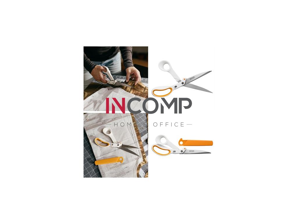 - Nožnice na látky Fiskars Amplify™ umožňujú presné a čisté rezy viacerých vrstiev látok alebo hrubých tkanín, ako je koža, čalúnenie, vinyl, vrecovina, semiš, flanel a ďalšie