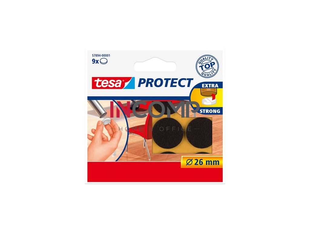 Plstené podložky tesa® Protect proti poškriabaniu sú vysoko univerzálne samolepiace vankúšiky, zabraňujúce škrabancom a znižujúce hluk. Ochránia drevo, sklo, parkety, laminátové podlahy a dlaždice. Dá sa nastrihať na požadované rozmery.