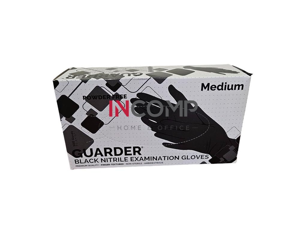 Rukavice zo syntetického nitrilového materiálu, nepudrované, odporúčané pre ľudí s pokožkou citlivou na latex a púder. -materiál: nitril (3,6gr) AQL: 1,5 -prémiová kvalita -jednorazové -nesterilné -bez prášku -bez latexu -mikrozdrsnená, zrolovaná stopka po celej ploche -dĺžka: 240 mm -možno nosiť na oboch rukách -farba: čierna -veľkosť : M - balenie: 100 ks/krabica