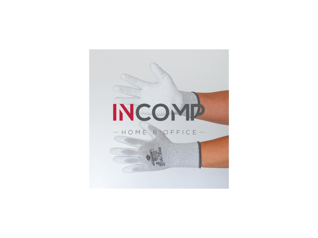 Rukavice s karbónovo-polyesterovou štruktúrou, máčané v PU na dlani, ktoré majú antistatické (ESD) vlastnosti. Sú ideálne na elektronickú montáž alebo do pracovného prostredia, kde je dôležité predchádzať elektrostatickému výboju. -materiál: jemne pletený sivý materiál (13 gauge) z karbónového a polyesterového vlákna, s polyesterovou elastickou manžetou, dlaň s bielym polyuretánovým povrstvením-použiteľné s väčšinou dotykových zariadení -použiteľné s väčšinou dotykových zariadení-farba: biela/sivá -veľkosť: 10/XL -balené po pároch v jednotkovom balení -balení: 12 párov/bal, 240 párov/kartón