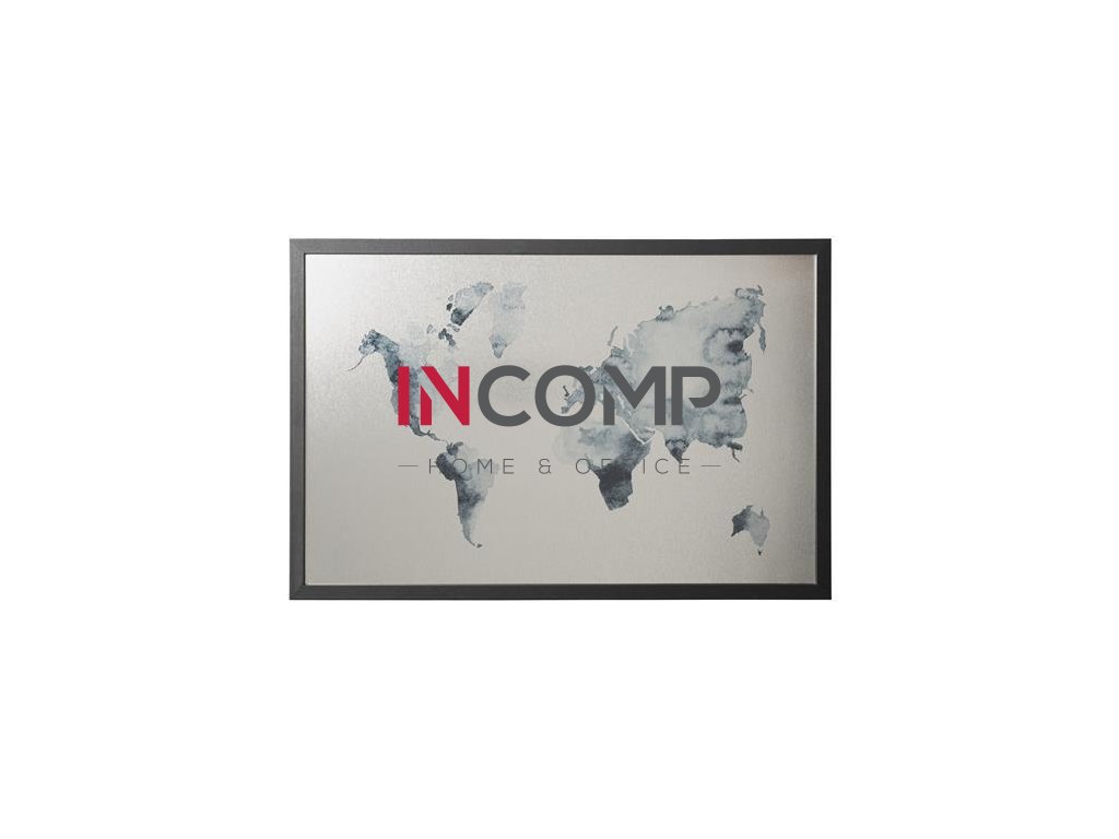 Odkazová tabuľa, magnetická, 60x40 cm, čierny drevený rám, VICTORIA VISUAL, "Mapa sveta"