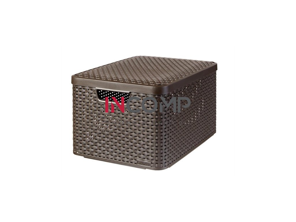 Odkladací box s vekom, s efektom rattanu, 30l, tmavohnedá, CURVER "Style L"