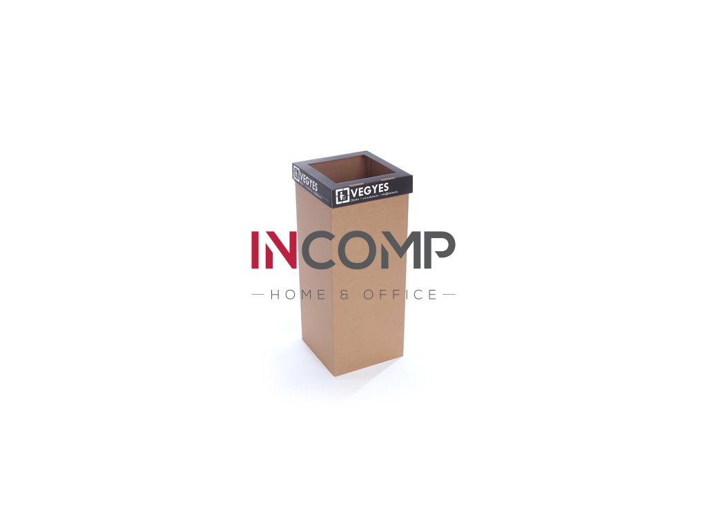 - odpadkový kôš na triedenie odpadkov vyrobený z ekologických materiálov - na vnútorné, kancelárske použitie - balenie je vyrobené z recyklovaného materiálu, ktorý môžete použiť ako sáčok do koša - objem: 50 l - rozmery v stoji: 300 x 300 x 605 mm POZOR: s maďarským nápisom! V prípade záujmu vieme zabezpečiť s anglickým nápisom!