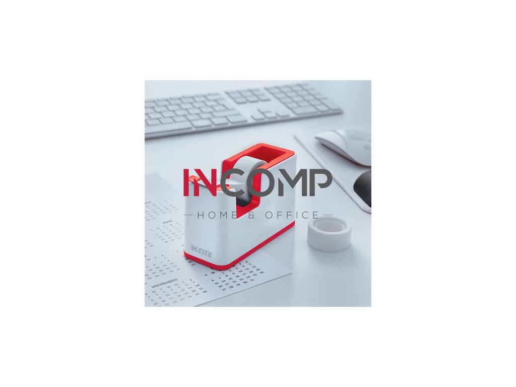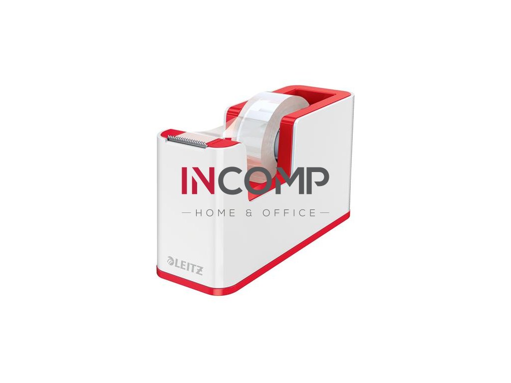 Odvíjač lepiacej pásky, stolový, naplnený, LEITZ "Wow", biela-červená