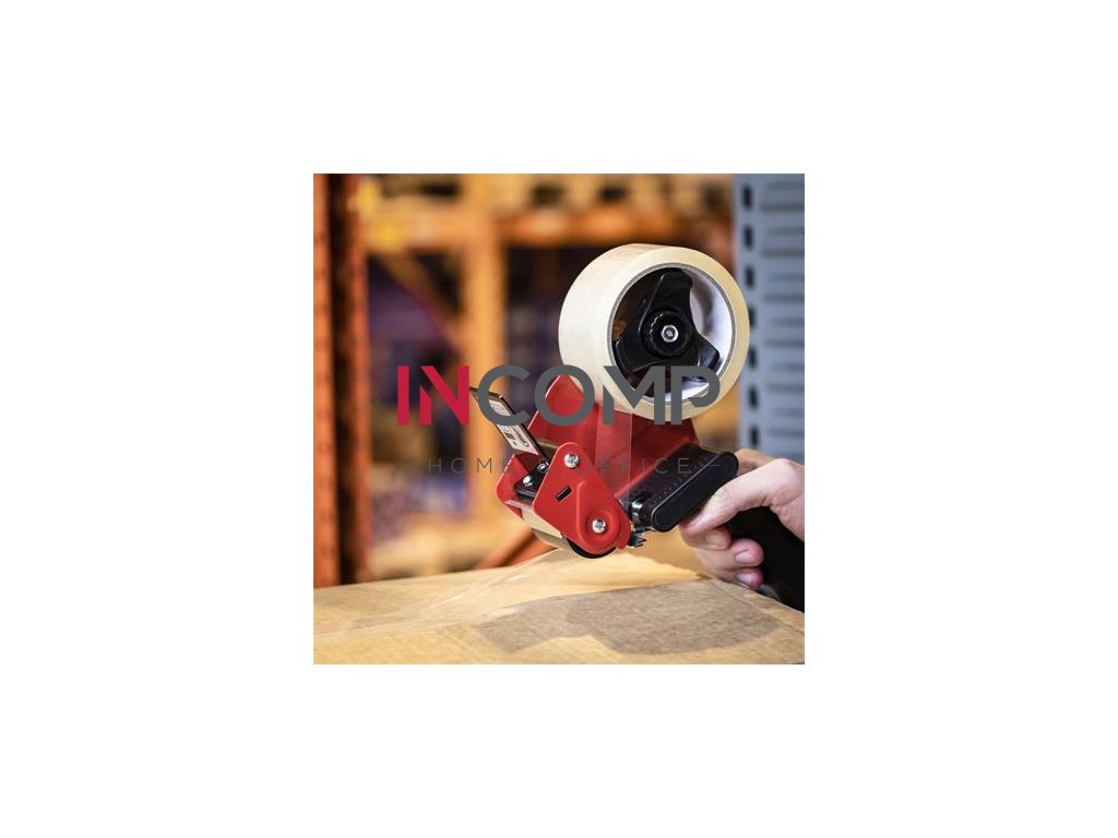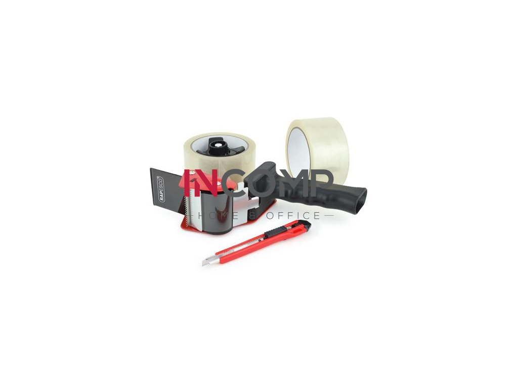 - dávkovač sa dodáva s 2 rolkami priehľadnej baliacej pásky (50 mm x 50 m) a 9 mm odlamovacím univerzálnym nožom