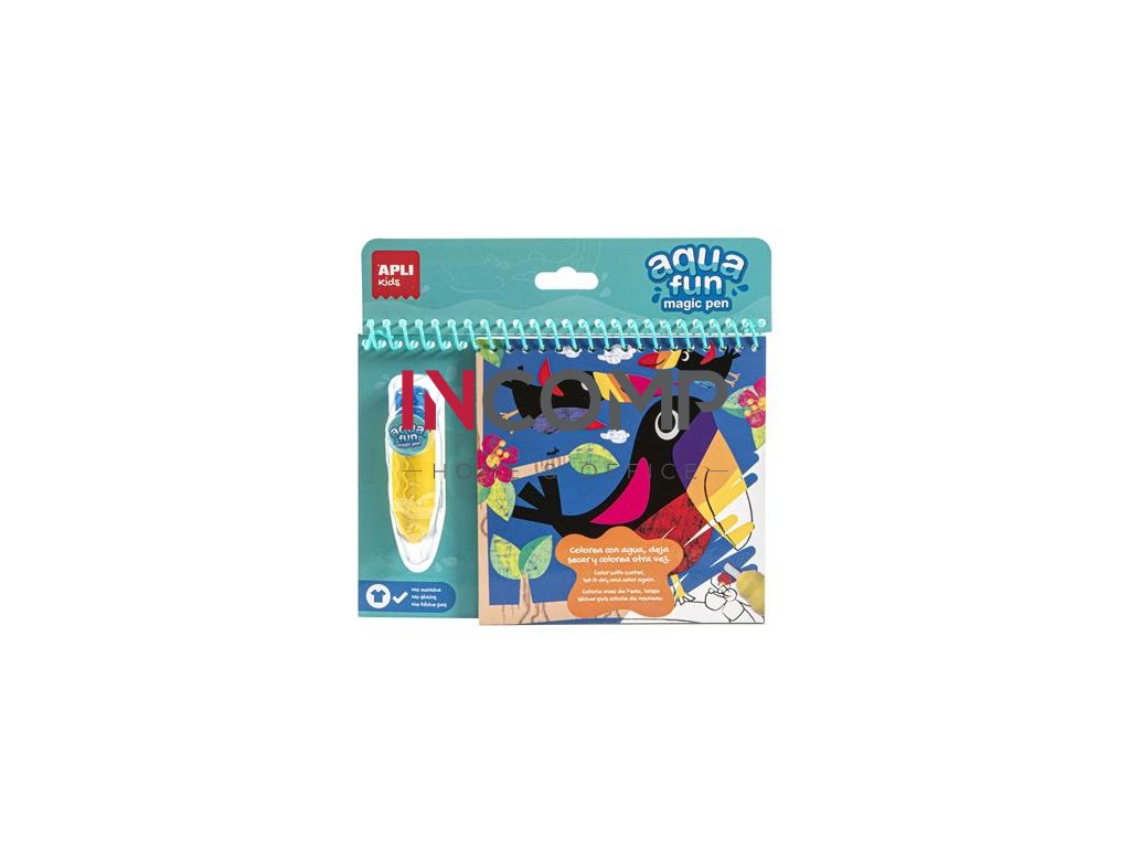 obsahuje 6 ks čierno-bielych kresieb, ktoré sa po vystavení vode sfarbia a po zaschnutí opäť čiernobiele, takže sa dá použiť viackrát