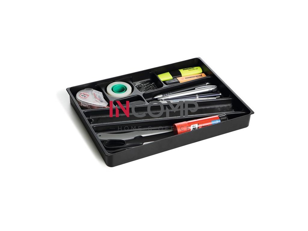 Organizér do zásuvky, držiak na písacie potreby, používateľný samostatne alebo v zásuvkovom boxe Idealbox Plus. -vonkajšie rozmery: 240 x 36 x 340 mm (š x v x d) -počet priečinkov: 8 -farba: antracitová -materiál: plast -80% recyklovaných materiálov
