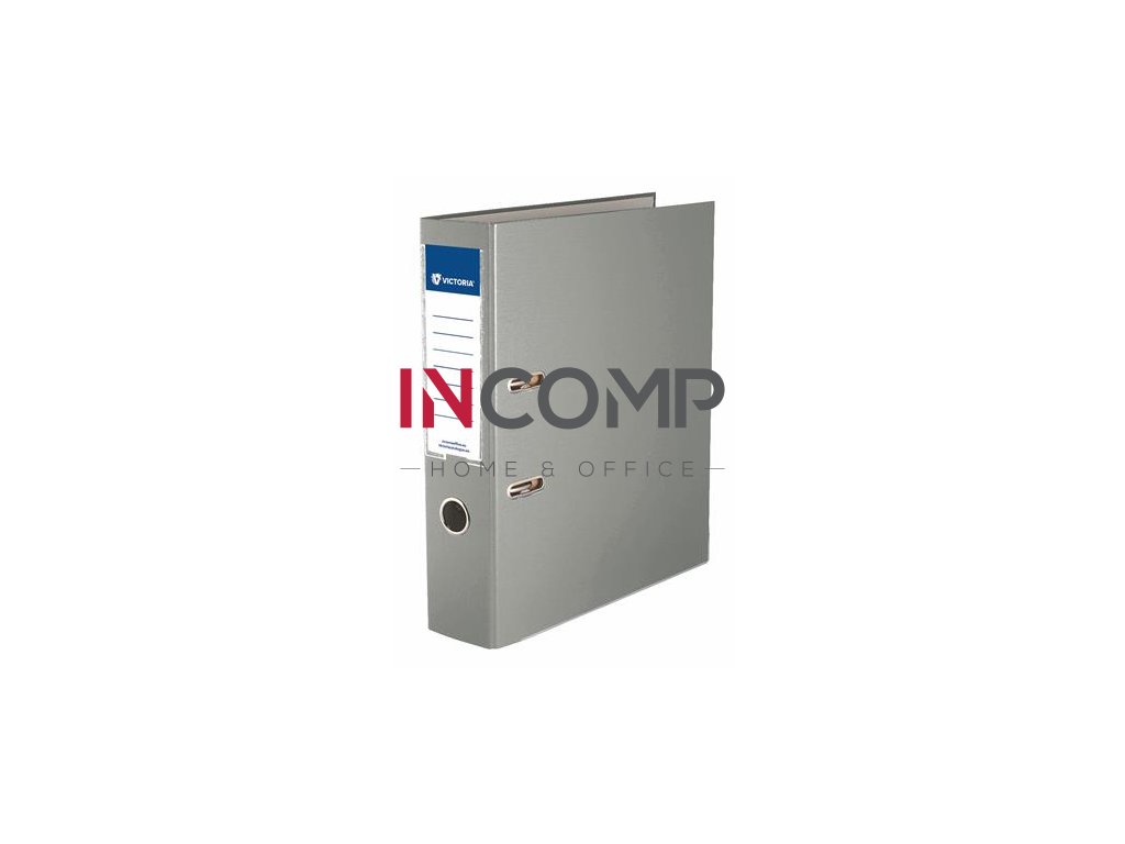 Pákový šanón, 75 mm, A4, PP/kartón, s ochranným spodným kovaním, VICTORIA OFFICE, "Basic", sivý