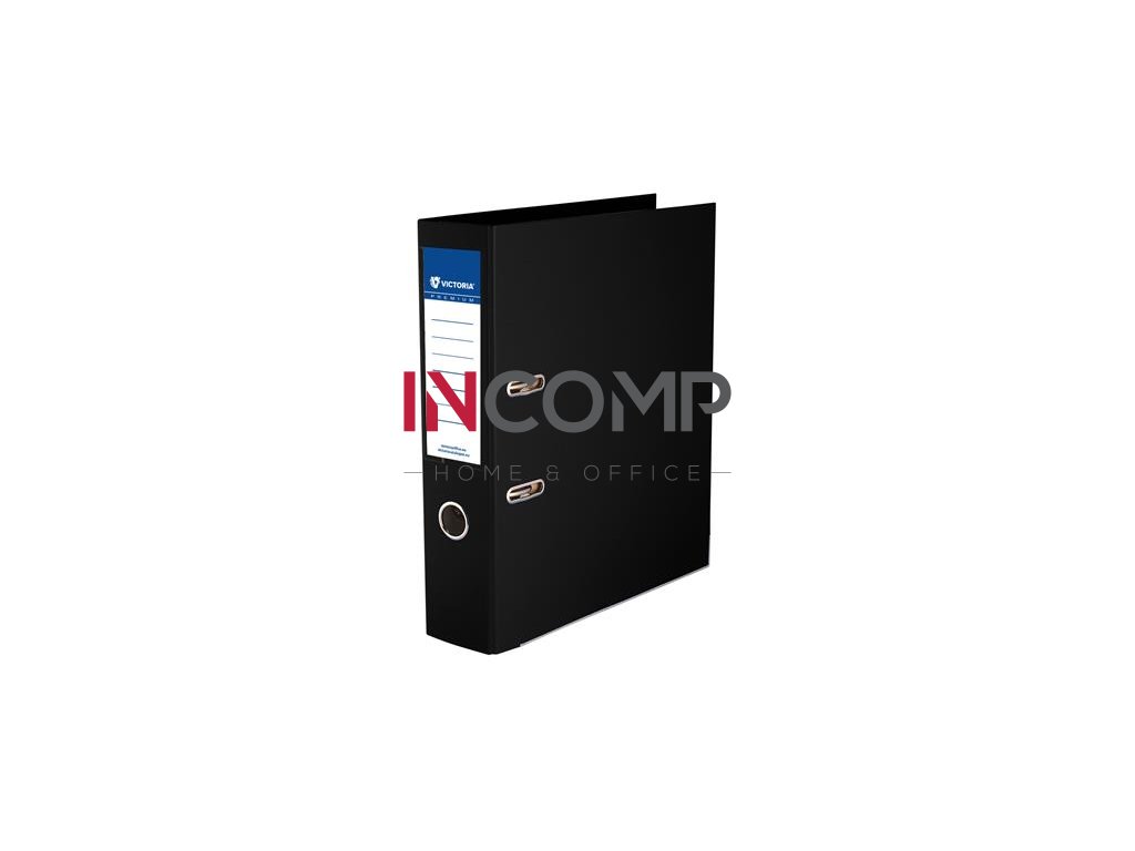 Pákový šanón, 75 mm, A4, PP/PP. s ochranným spodným kovaním, VICTORIA OFFICE „Premium“, čierny
