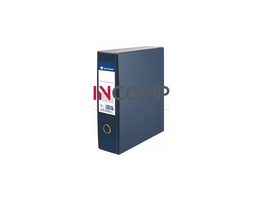 Pákový šanón s obalom, 75 mm, A4, kartón, VICTORIA OFFICE, tmavomodrý