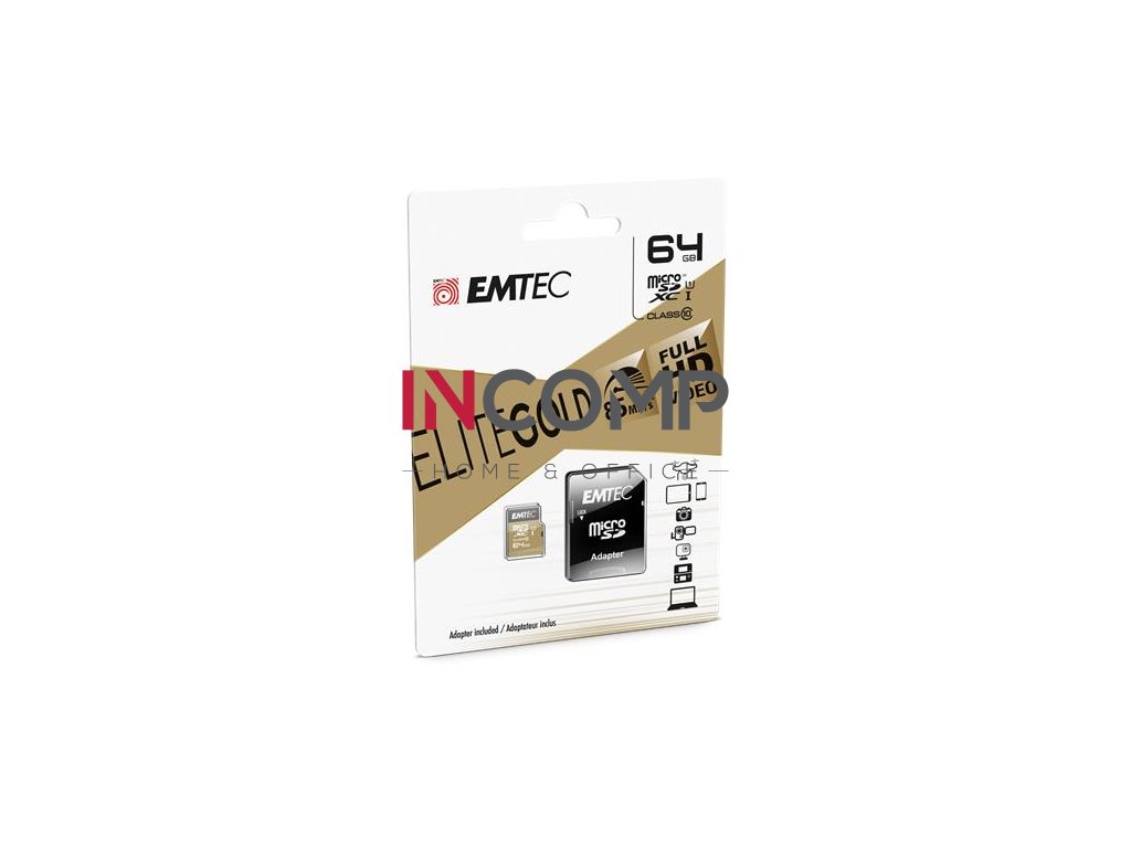 Pamäťová karta, microSDXC, 64GB, UHS-I/U1, 85/20 MB/s, adaptér, EMTEC "Elite Gold"