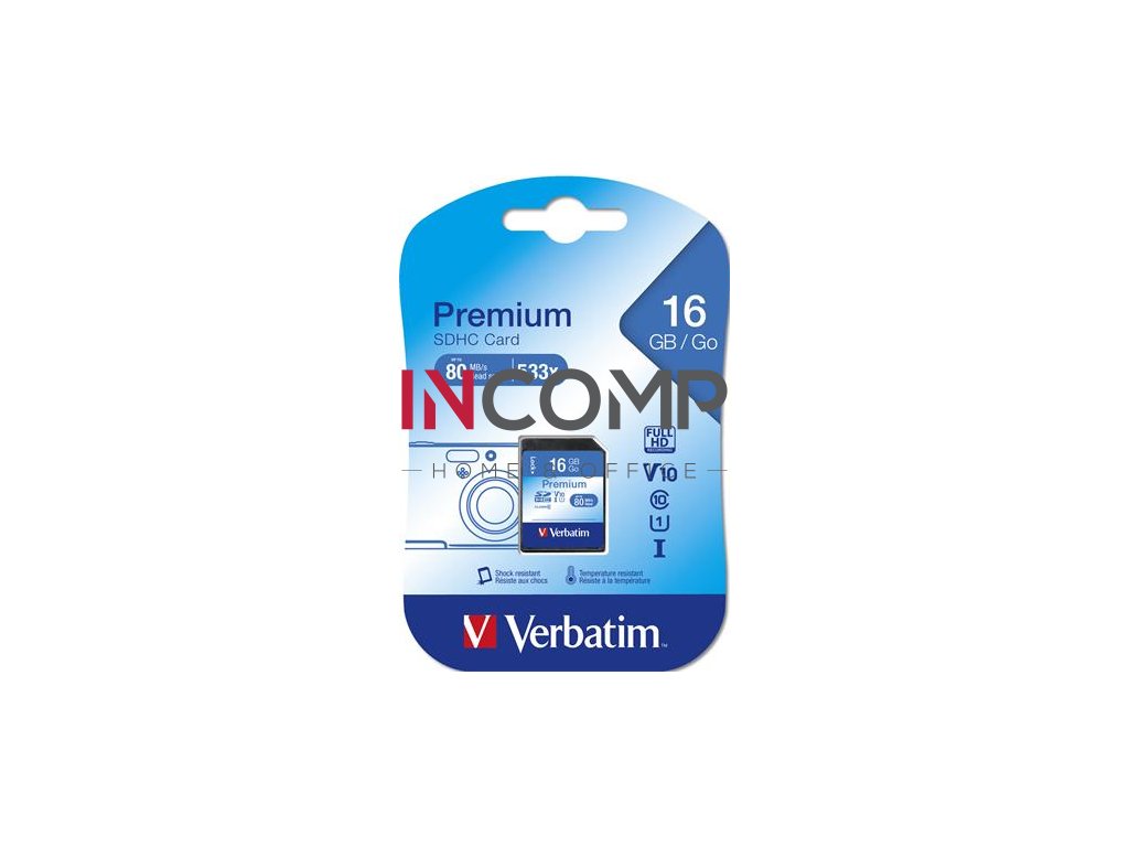 Pamäťová karta, SDHC, 16GB, CL10/U1, 80/10 MB/s, VERBATIM "Premium"