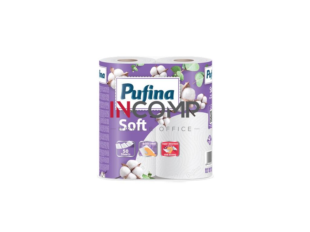 Papierové utierky, 2-vrstvové, 50 listov, 2 kotúče, PUFINA "Soft"