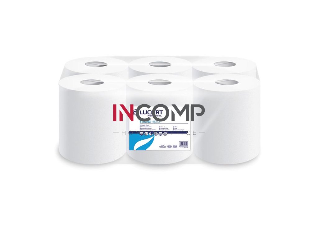 Papierové utierky, kotúčové, vnútorné dávkovanie, 2-vrstvové, LUCART "Strong 450 CF", biela