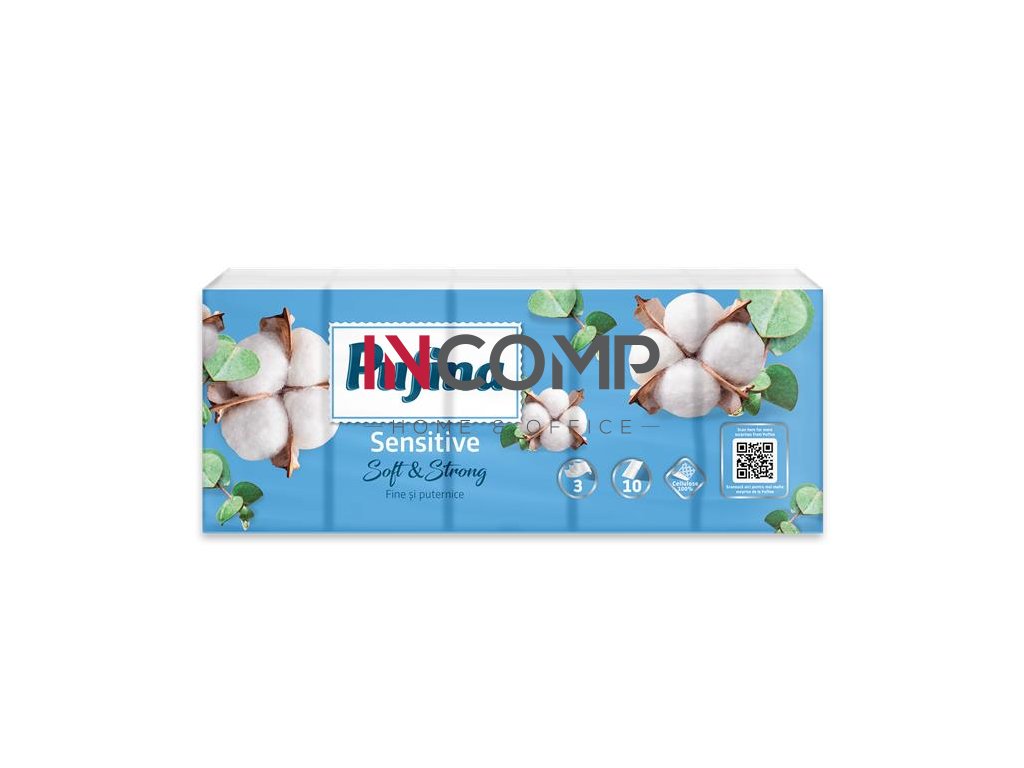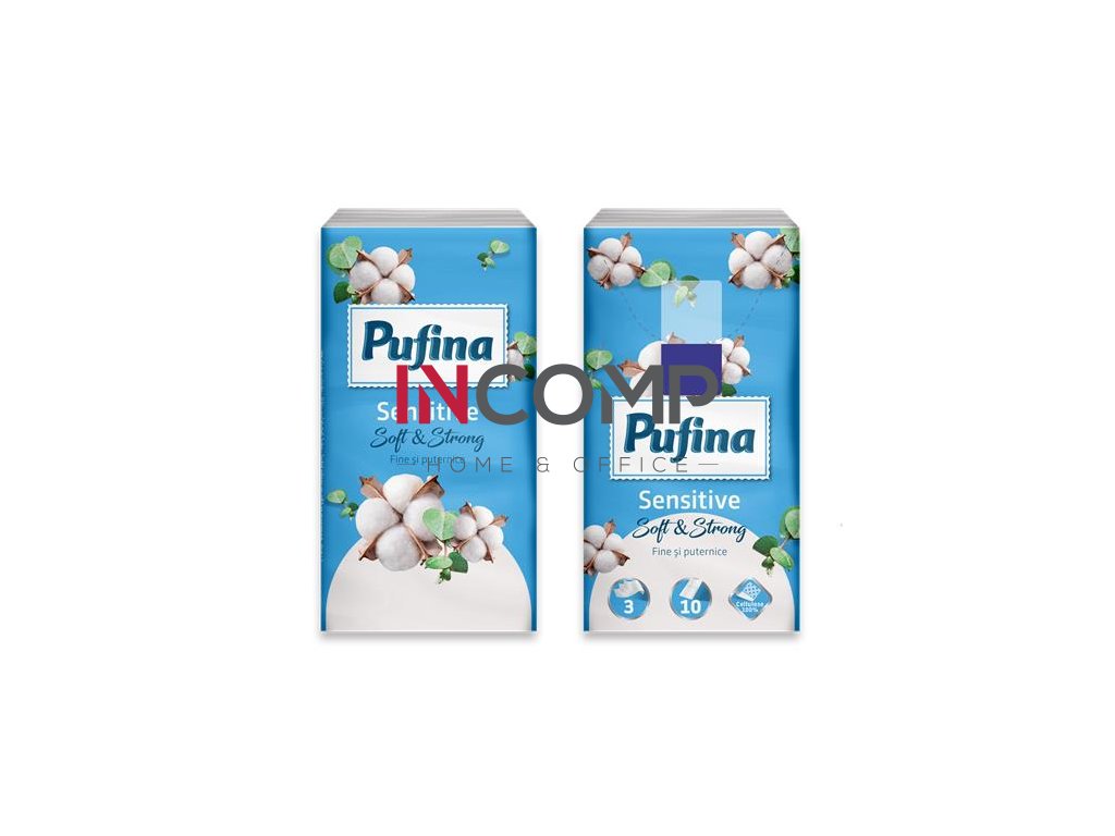 Papierové vreckovky, 3-vrstvové, 10×10 ks, PUFINA "Sensitive"
