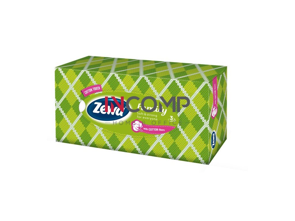 Papierové vreckovky, 3-vrstvové, 90 ks, ZEWA "Family", bez vône