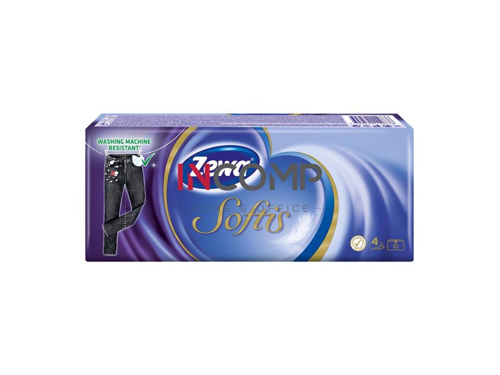 Papierové vreckovky, 4-vrstvové, 10x9 ks, ZEWA "Softis", klasický