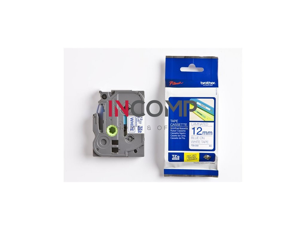 Páska do štítkovača, 12 mm x 8 m, BROTHER, biela-modrá