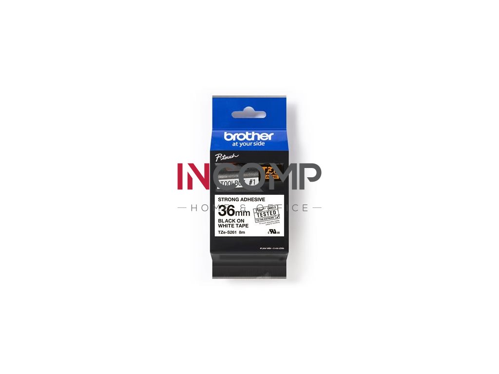 Páska do štítkovača, 36 mm x 8 m, BROTHER, biela-čierna