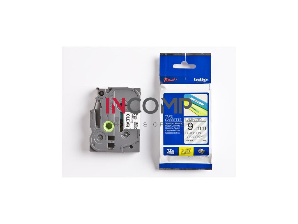 Páska do štítkovača, 9 mm x 8 m, BROTHER, "TZe-121" priehľadná-čierna
