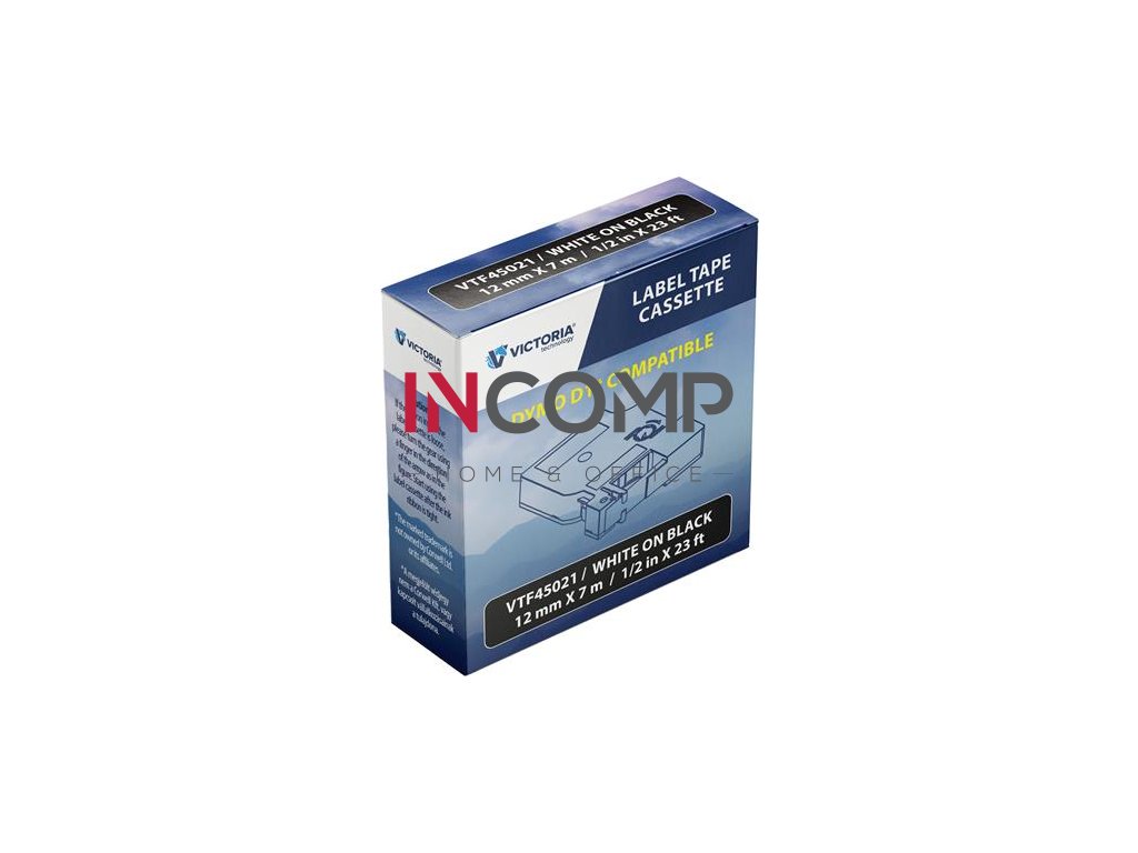 Páska do štítkovača 12 mm x 7 m, kompatibilita: DYMO D1, VICTORIA TECHNOLOGY, čierna-biela