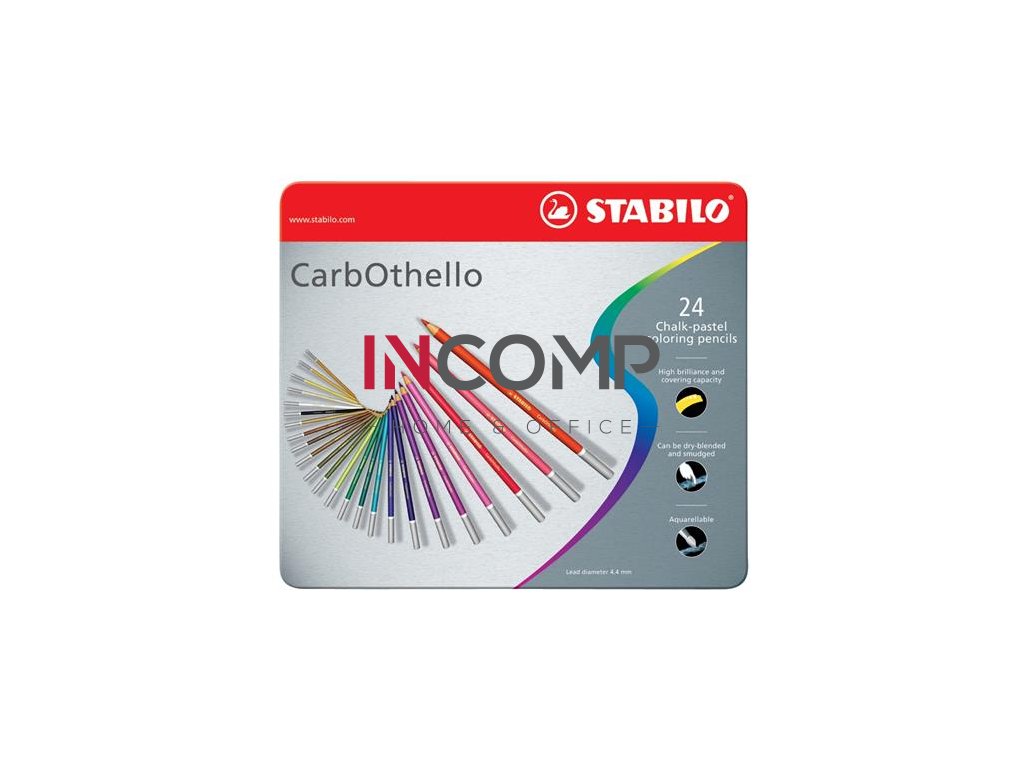 Pastelové ceruzky, sada, okrúhle, plechová krabička, STABILO "CarbOthello", 24 rôznych farieb