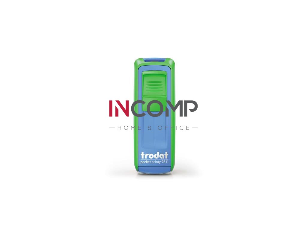 Pečiatka, TRODAT "Pocket Printy 9511", zelený-modrý kryt, s čiernou poduškou