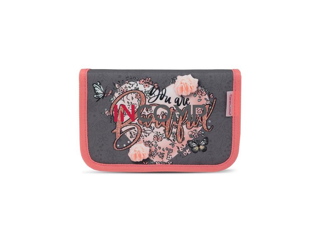 - priehradky: 1 vnútorná priehradka + 2 chlopne - kapacita: 27 ceruziek + 1 pravítko + 1 guma + 1 strúhadlo - materiál: polyester - rozmer: 14x20,5x3,5 cm - odporúčané pre 6-9 ročné deti