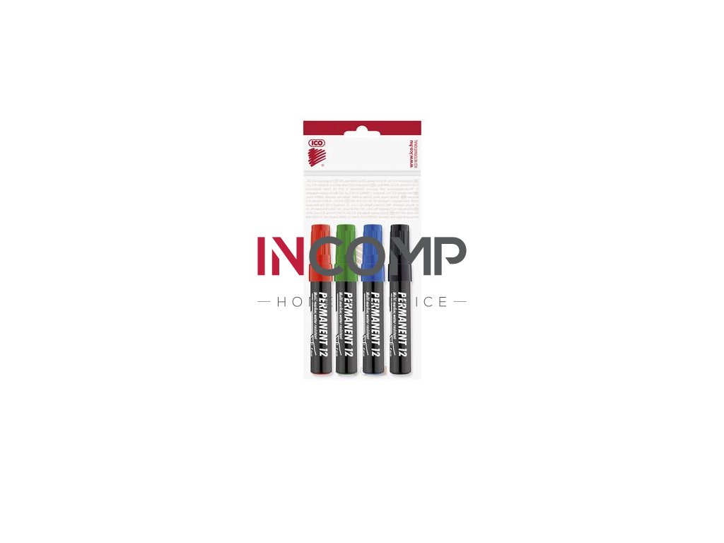 Permanentný popisovač, sada, 1-4 mm, zrezaný hrot, ICO "Permanent 12", 4 rôzne farby