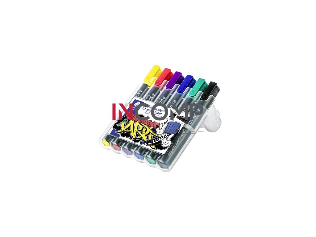 Permanentný popisovač, sada, 2-5 mm, STAEDTLER "Lumocolor 350", 6 rôznych farieb
