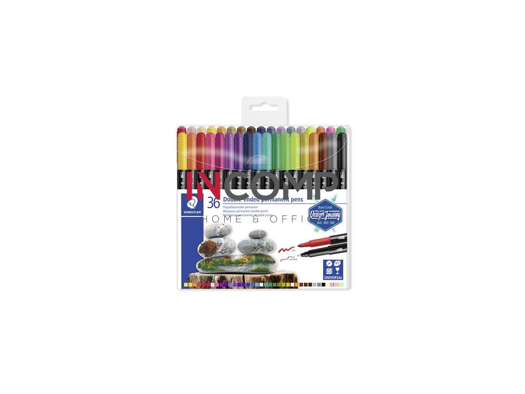 Permanentný popisovač, sada, obojstranný, 0,5/3,0 mm, STAEDTLER "3187", 36 rôznych farieb