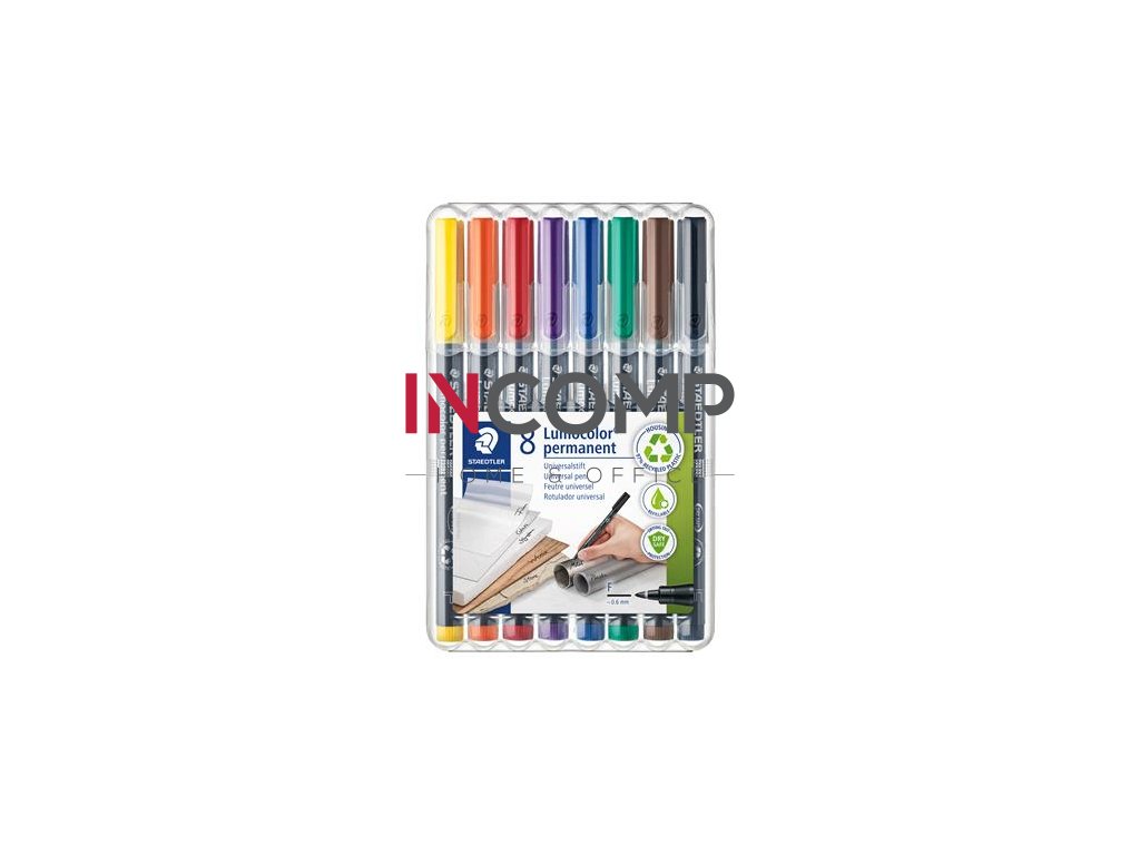 Permanentný popisovač, sada, OHP, 0,6 mm, STAEDTLER "Lumocolor 318 F", 8 rôznych farieb