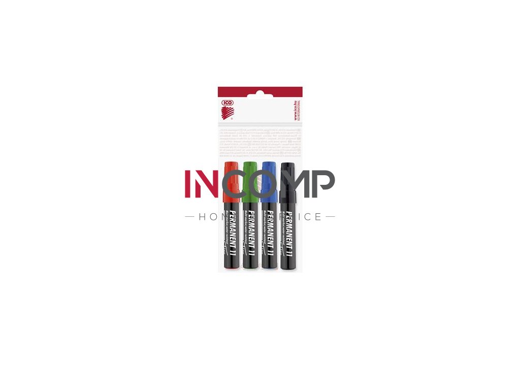 Permanentný popisovač, sada, 1-3 mm, kužeľový hrot, ICO "Permanent 11", 4 rôzne farby