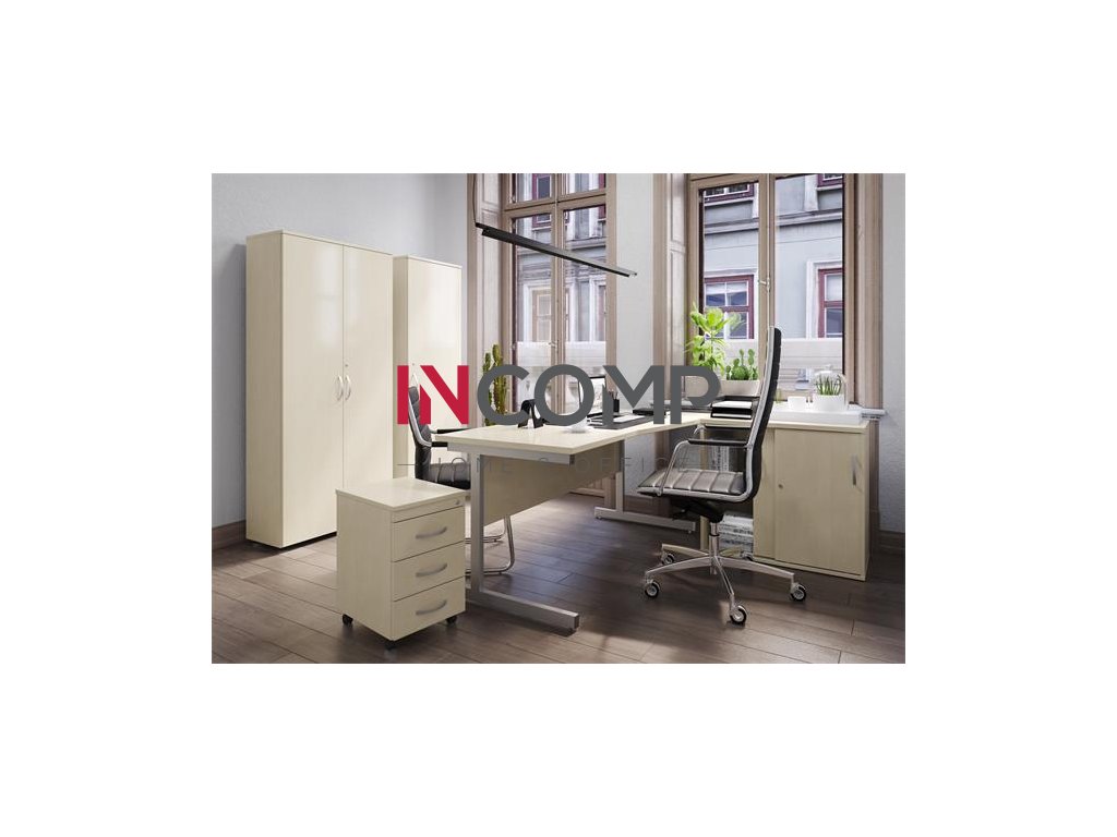 Písací stôl, zakrivený, ľavý, so sivými kovovými nohami, 160x80cm, MAYAH "Freedom SV-30", javor