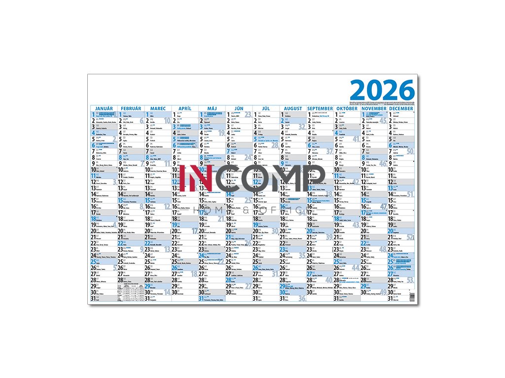 Jednolistový plánovací kalendár obsahujúci menné kalendárium.