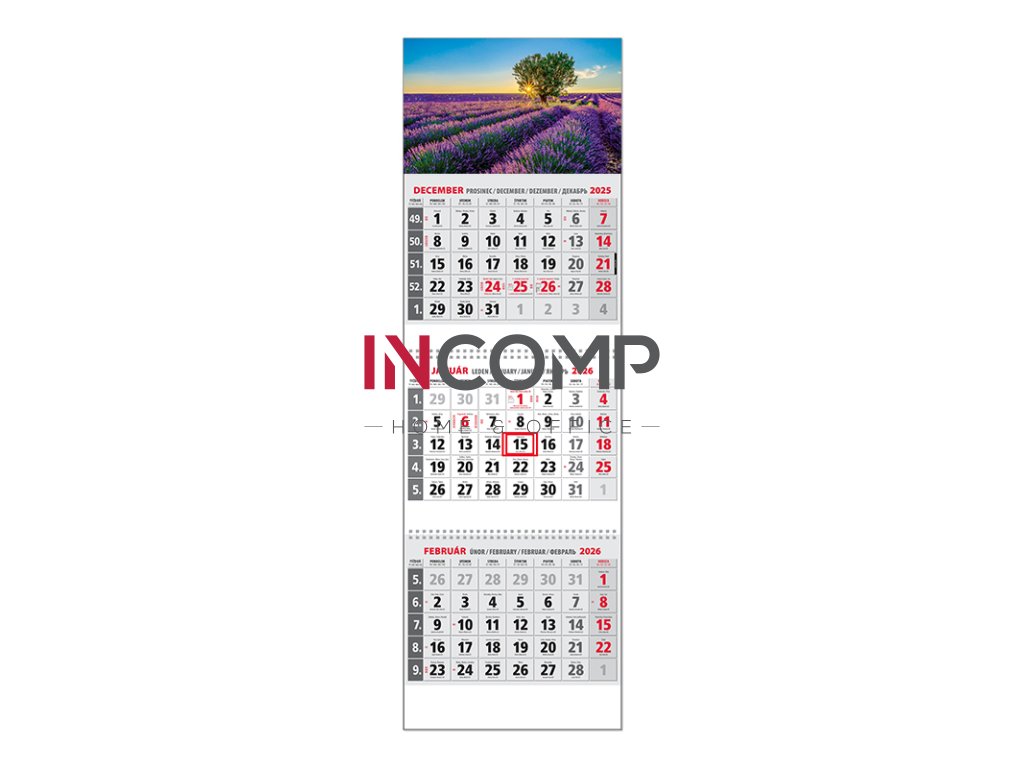 Trojdielny kalendár s menami v SK + CZ, názvy mesiacov a dní v SK, CZ, EN, DE a RU. Obrázok C