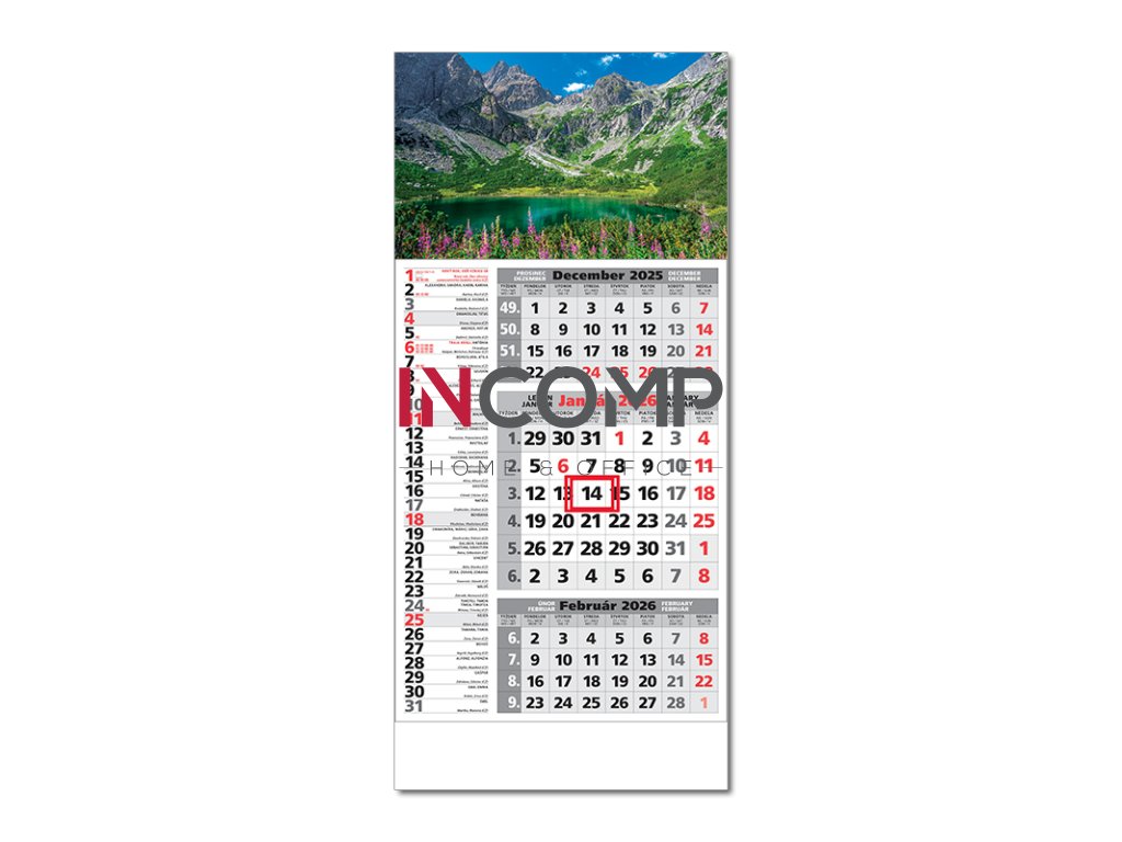 Plánovací kalendár ŠTANDARD 3M kombi 2026 Obrázok A