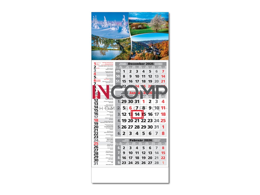 Plánovací kalendár ŠTANDARD 3M kombi 2026 Obrázok D