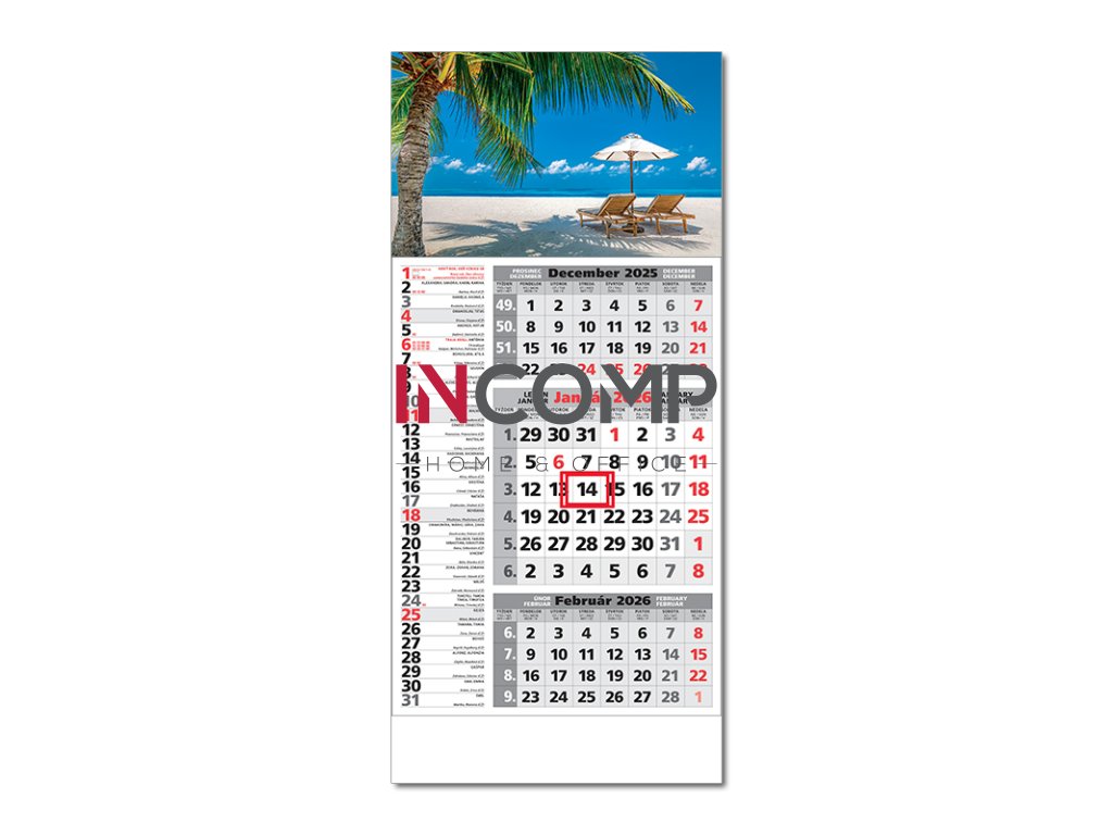 Plánovací kalendár ŠTANDARD 3M kombi 2026 Obrázok F