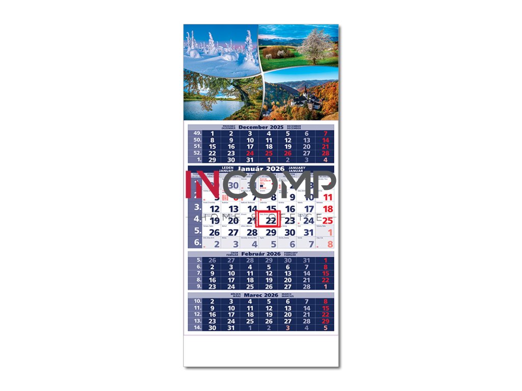 Plánovací kalendár so 4-mesačným kalendáriom s menami v SK, názvy mesiacov a dní v SK, CZ, EN, DE a HU. Obrázok D