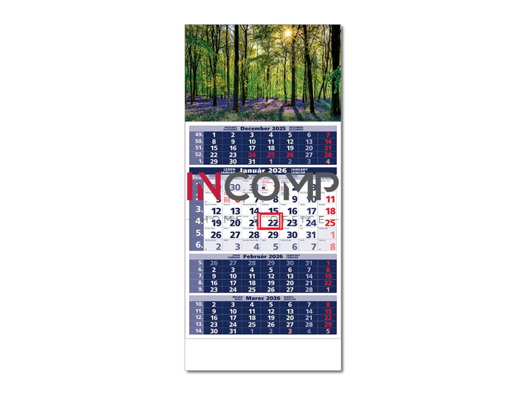 Plánovací kalendár so 4-mesačným kalendáriom s menami v SK, názvy mesiacov a dní v SK, CZ, EN, DE a HU. Obrázok E