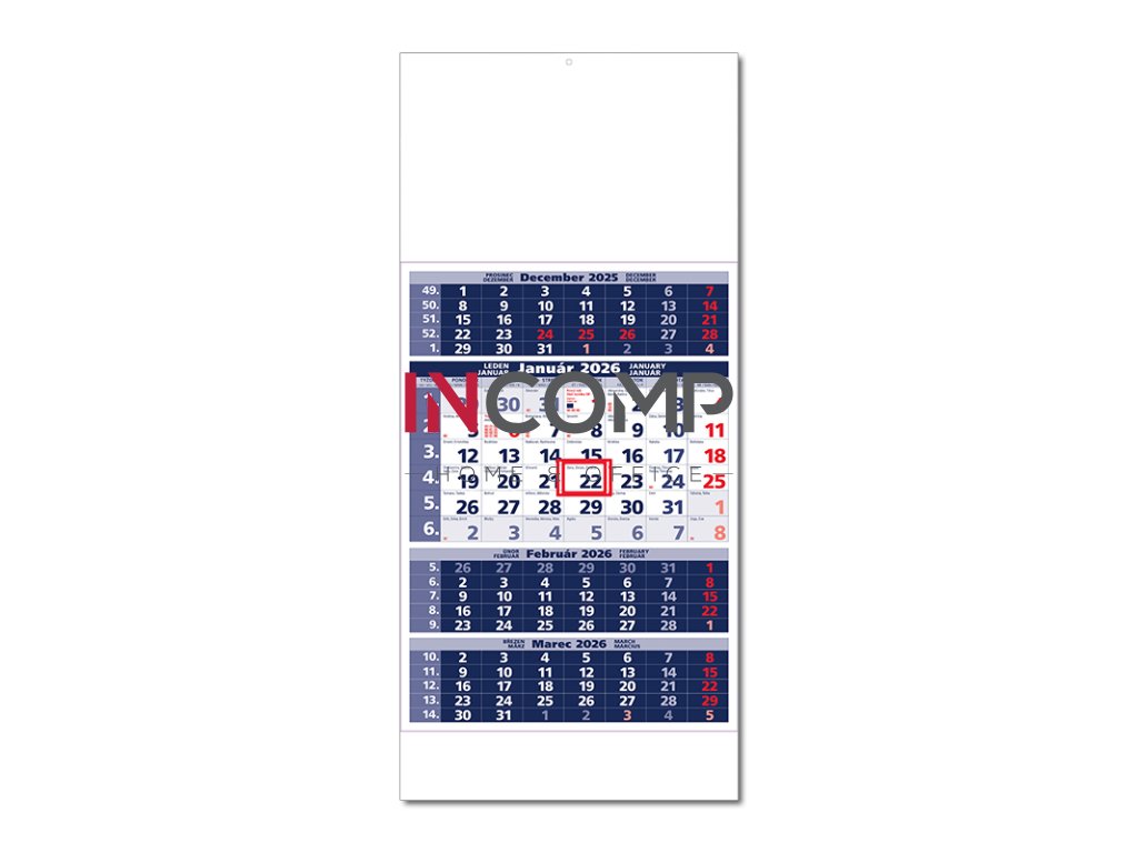 Plánovací kalendár so 4-mesačným kalendáriom s menami v SK, názvy mesiacov a dní v SK, CZ, EN, DE a HU.