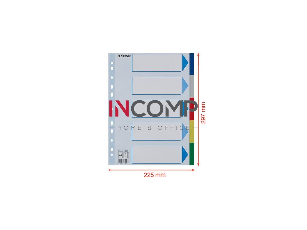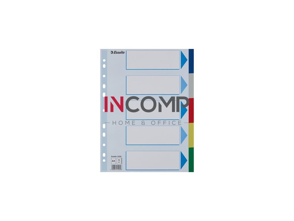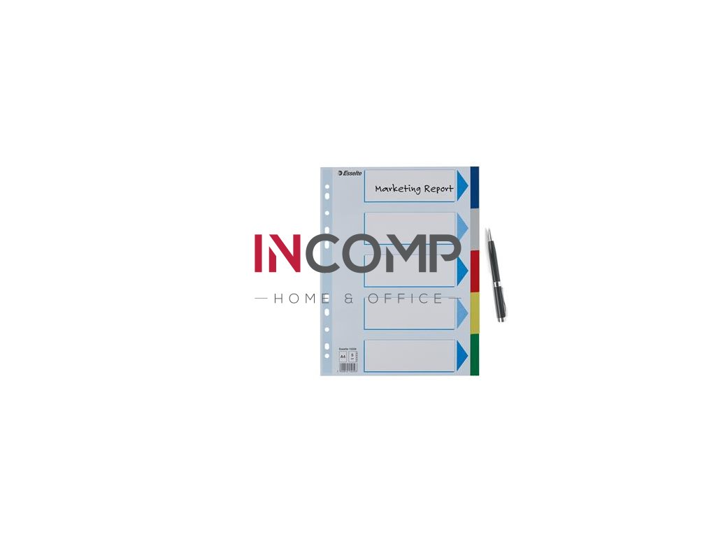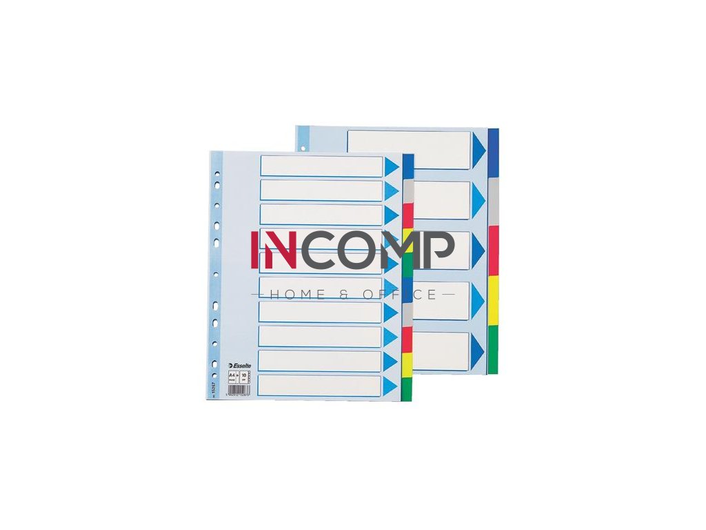 Plastové rozlišovače pre farebné triedenie dokumentov v zoraďovačoch či doskách do formátu A4 s titulnou popisovateľnou stranou. Jednotlivé stránky v rôznych farbách.