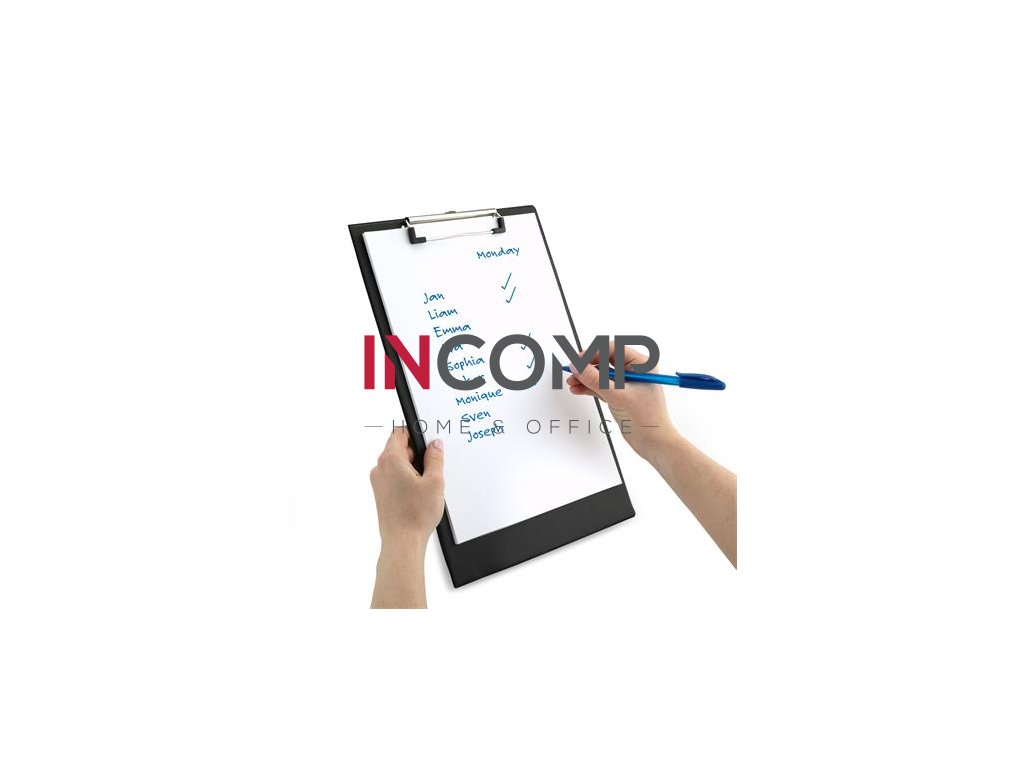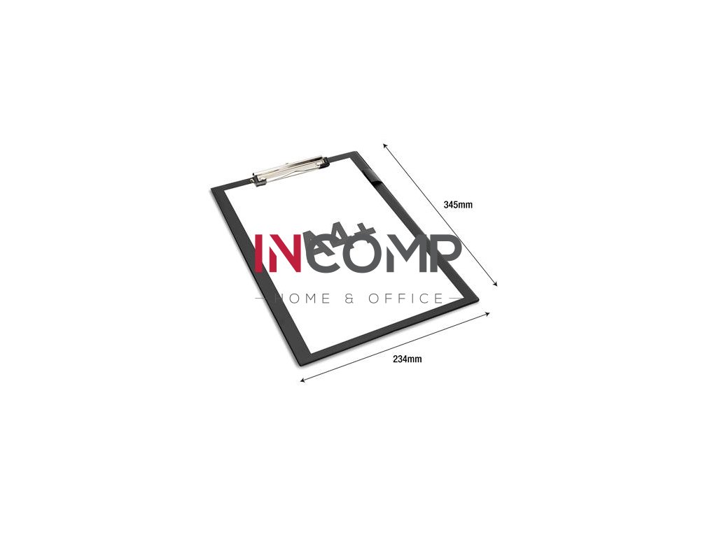 Extra silný klip s veľkou kapacitou pevne udrží papier, zatiaľ čo povrchová úprava poskytuje výnimočne hladký priestor na písanie. -s držiakom na písacie potreby -materiál: PVC -veľkokapacitný klip (max. 100 listov/ 80 g papiera) -stojatý -formát: A4+ -rozmery: 234 x 345 mm (š x v)