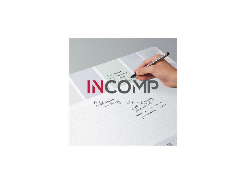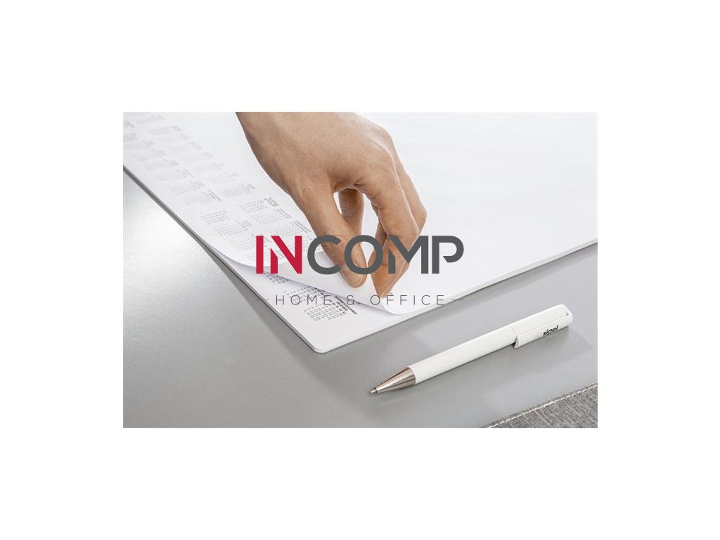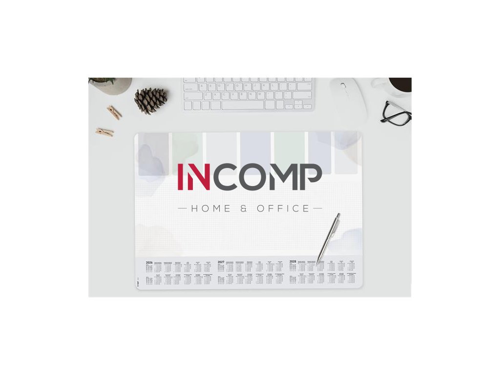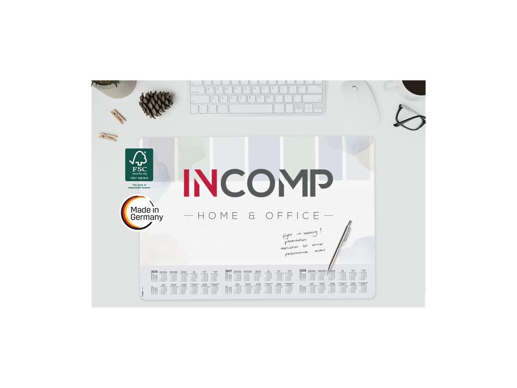 Vysokokvalitná písacia podložka na stôl vyrobená z papiera s gramážou 80 g/m² a pevnou zadnou stranou. - s 3-ročným kalendárom (2026/2027/2028) - s týždenným plánovačom - štvrojazyčná: angličtina, nemčina, francúzština a holandčina - veľkosť: približne A2 - vegánsky produkt - zaoblené rohy - 30 listov - certifikovaná FSC