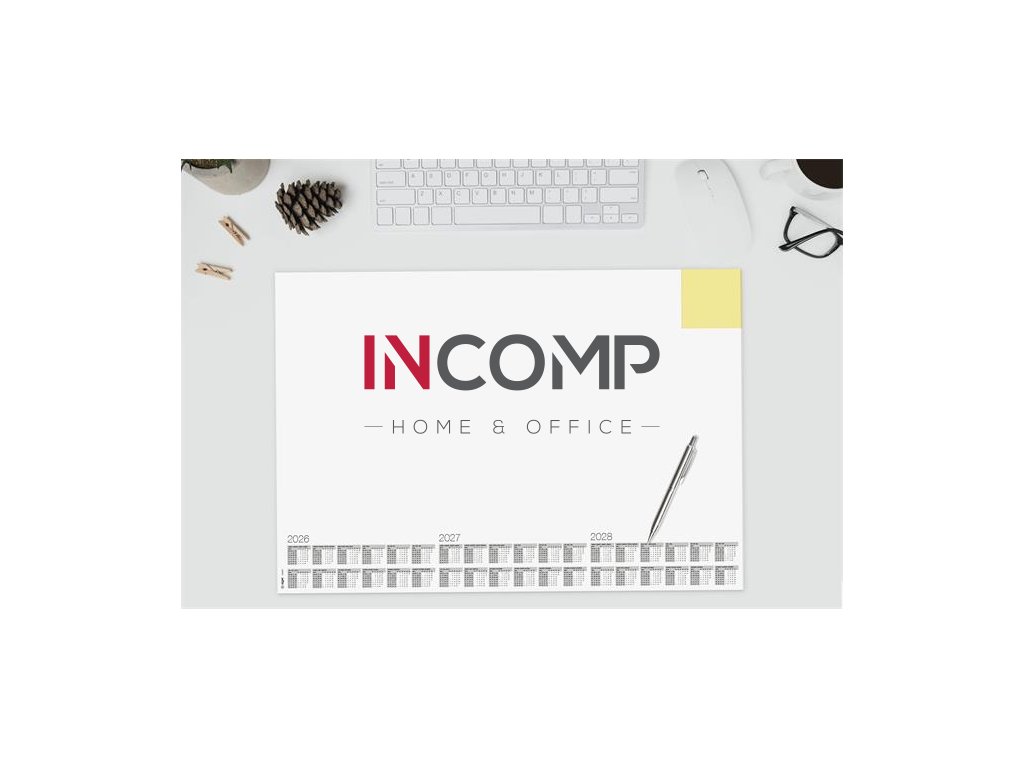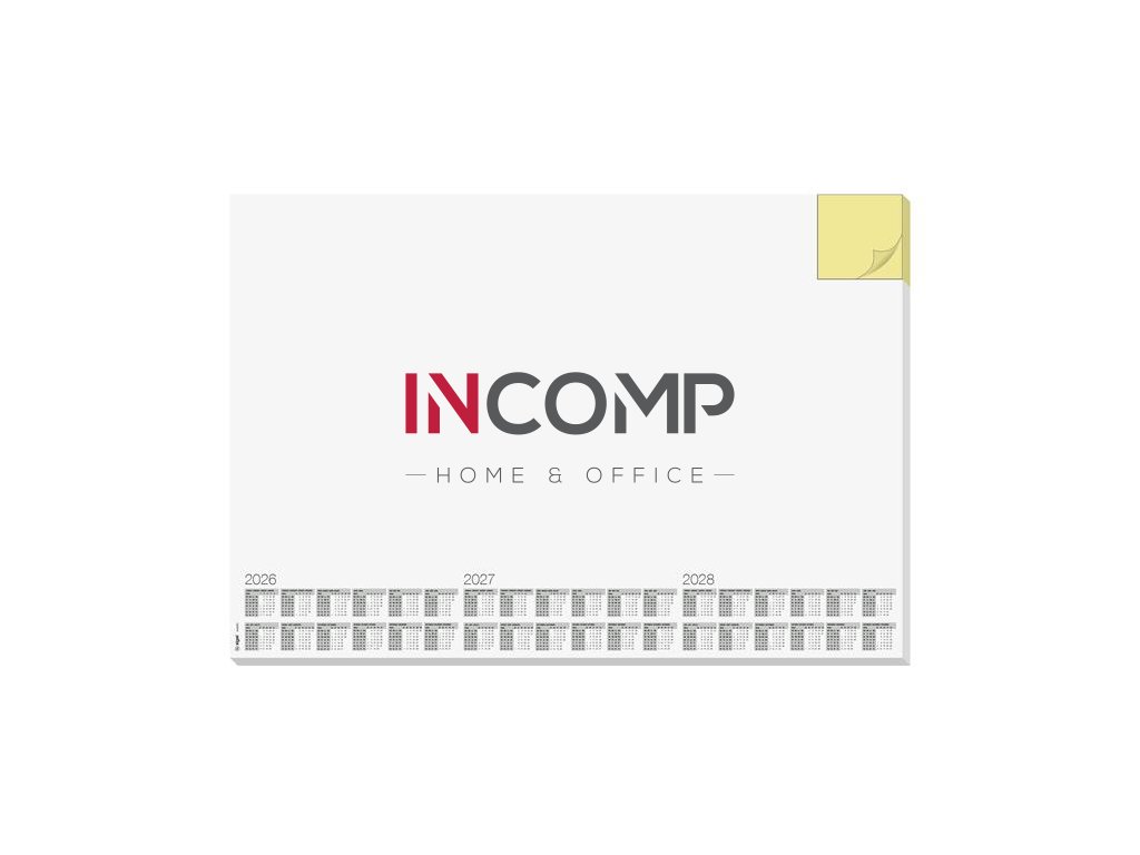 s trojročným kalendárom (2026/2027/2028) -štvorjazyčný: angličtina, nemčina, francúzština a holandčina -veľkosť: približne A2 -odolný, protišmykový a vďaka masívnej kartónovej zadnej doske úplne rovno leží -použiteľný aj ako podložka pod myš -30 listov -farba: biela -s certifikátom FSC