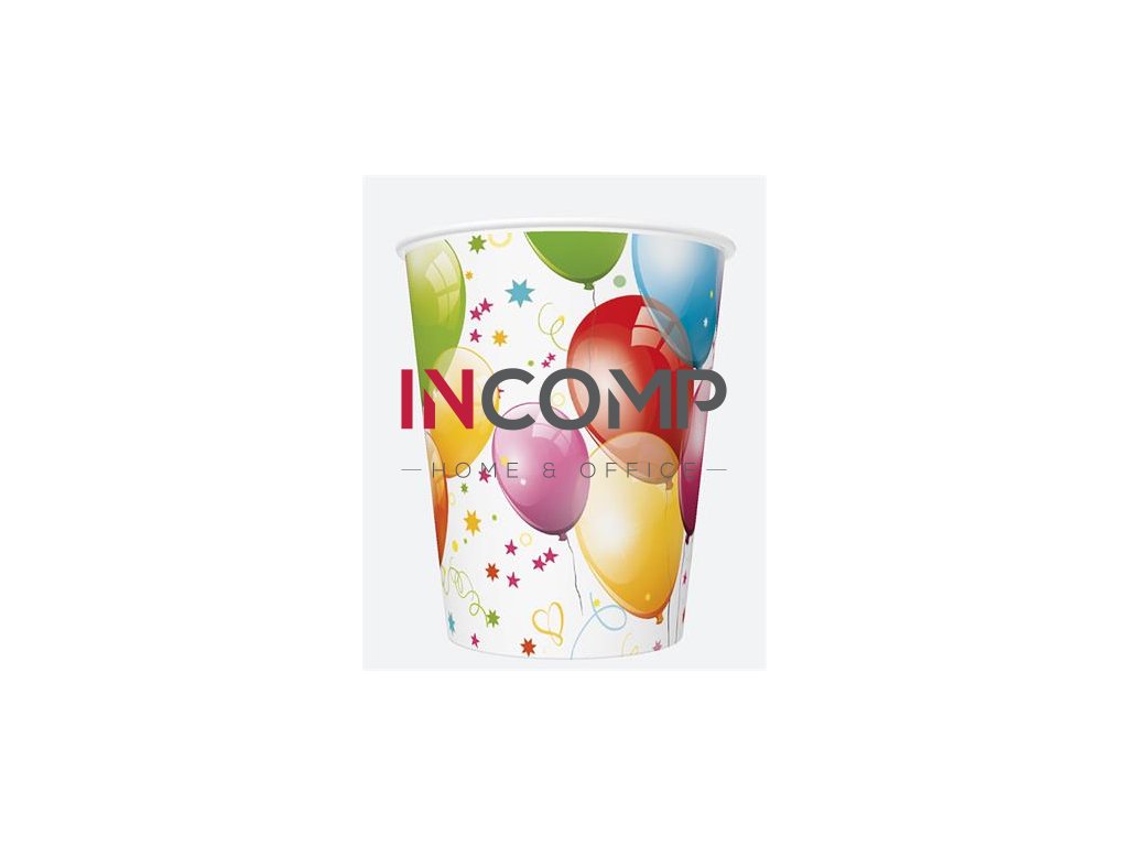 - materiál: papier - objem pohára: 2,5 dl - balenie: 6 ks/bal - veselý, farebný balónový vzor